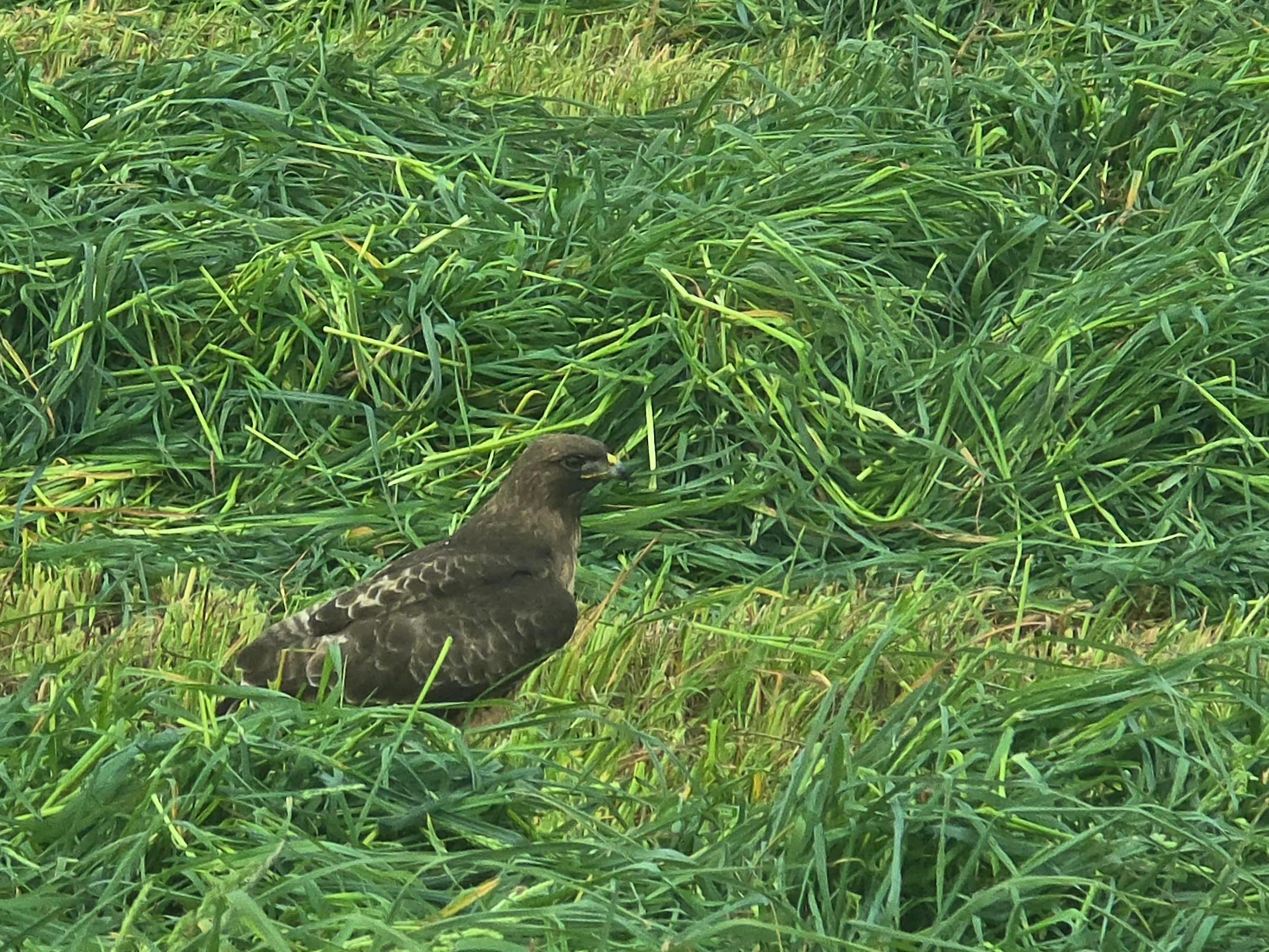 One of my favorite parts of starting up hay season is seeing the raptors doing some u-pick rodent control. This Redtail Hawk flew away with a meal.