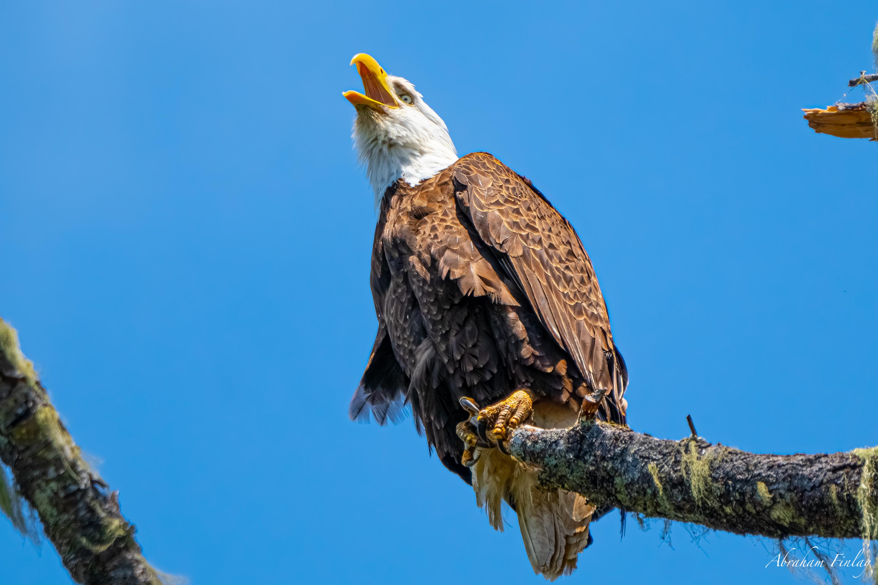 This is my favorite Bald Eagle photo I’ve taken! I took this photo last spring. We were on our way to hike Wolf Creek Falls, and I spotted this eagle perched in a tall snag along Little River. I believe it’s called whistling when an eagle lifts its head straight up in the air like this and makes a series of high-pitched whistling screeches. It made for a really cool photo! A Bald Eagle’s eyes are 4-8 times better than a human’s! It helps them spot their prey from immense distances.