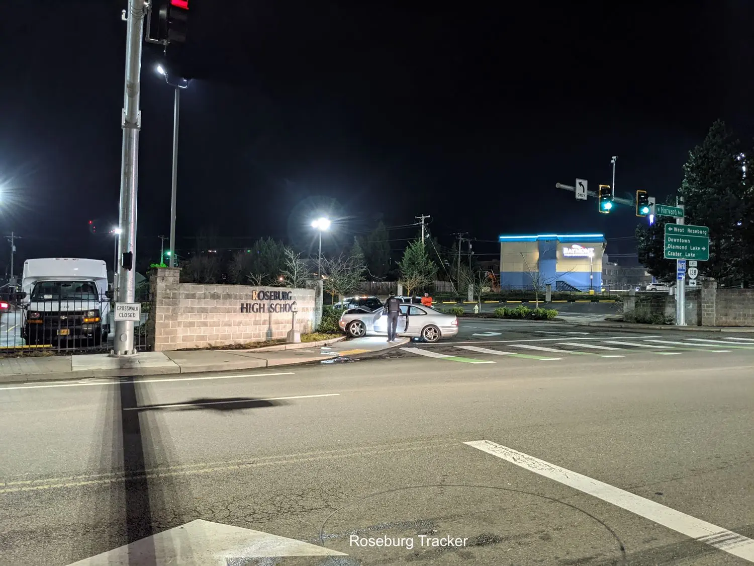 A car ran over the curb and hit the entry wall at Roseburg High School early Monday evening. Police were on-site investigating. The vehicle sustained a good bit of front end damage but the wall looked like it held up well in the collision. More details to come as they are made available.