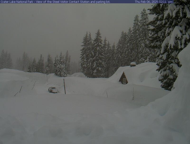 The most recent storm has dumped almost 4 feet of snow at Crater Lake National Park over the past 6 days. The park now has 138 inches of snow, which is 59 inches higher than normal for this point of the winter. Normal snow depth for today is 79 inches. Another 8-12 inches of snow is predicted over the next few days before another dry/cold spell arrives. Temperature at the park is not predicted to go above 27 degrees over the next 10 days and there are several days with low temps in the single digits. Forecast for next week is still a bit up in the air as far as precipitation goes, but lower temperatures 20's every day are expected for next week. More to come as it becomes available.
