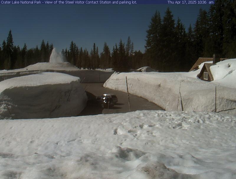 The snowpack at Crater Lake is 126 inches, which is 26 inches higher than normal for this point of the year. The warm, beautiful weather has melted off about 25 inches of snow over the past few weeks. The weather this coming week will remain nice, but temps will cool down quite a bit with the Easter Sunday high being around 59 degrees. This web cam shot is pretty cool as you can see the snow plow working in the background.