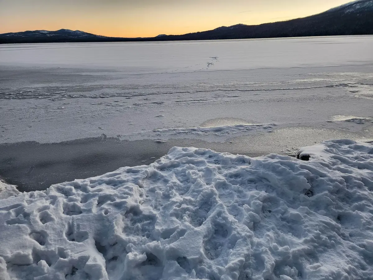 Diamond Lake has begun freezing over for the winter. There is now a thin layer of ice and snow on the north end of the lake. However the south end of the lake has not frozen over yet completely. The ice is still very thin and not safe for people to go out on it yet. More snow and and cold temperatures are on the way for the Diamond Lake Thursday through Sunday according to the National Weather Service. Here is the latest forecast discussion from the NWS in Medford: https://www.weather.gov/wrh/TextProduct?product=afdmfr Photos courtesy of Ginger Finch