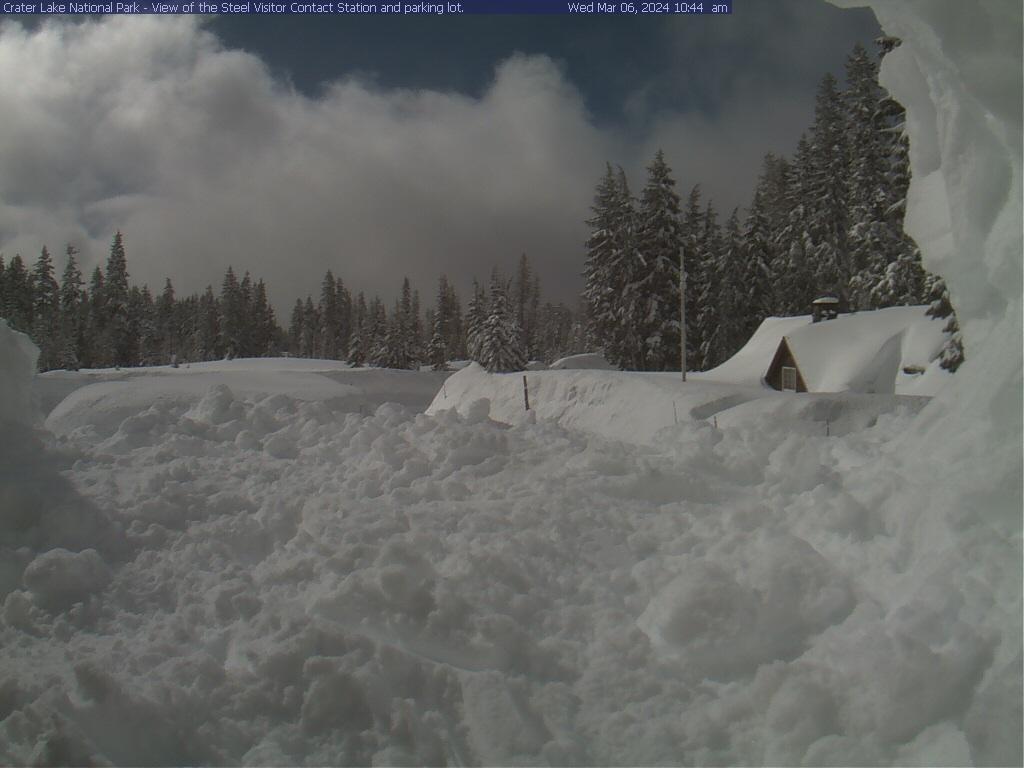 Someone climbed up and dug out the camera so we can see how much snow Crater Lake has! At this point they are saying 12.5 feet (148 inches) as of this morning, which is 50 inches higher than normal. I thought it would be a bit higher than that, so we'll see if it gets adjusted. Still, that is a lot of snow!