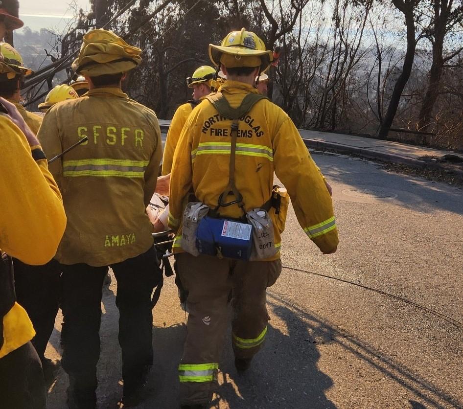 Douglas County strike team leaders discovered two stranded elderly residents while checking for fire hotspots in an area ravaged by Southern California's Palisades Fire. Here is the full announcement from the Oregon State Fire Marshal: "Last Saturday, the Douglas County strike team leader and assistant strike team leader were looking for hots spots in an area inaccessible for fire engines and damaged by the Palisades Fire in Southern California. They heard people in a home. When they went to check, the firefighters found two older adults who had been injured and without food, water, or communication for several days. The two firefighters coordinated an ambulance and worked with another strike team in the area to get the pair down to the waiting ambulance. If that wasn't enough, our firefighters called the pair's family to let them know they were safe and stayed at the home to put out hotspots nearby. WAY TO GO!" Courtesy of the Oregon State Fire Marshal More information to come as it becomes available.