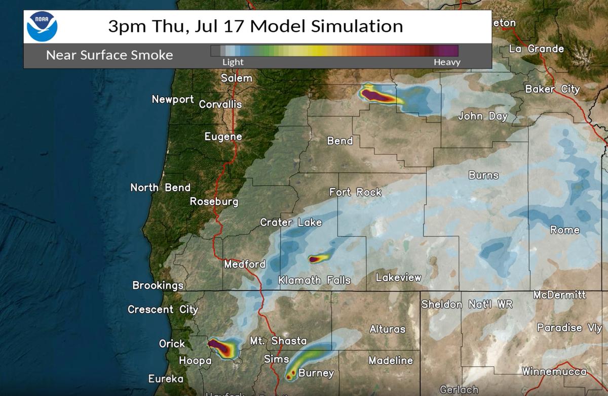 There are currently no wildfires in our area. The drift smoke we are seeing in the Roseburg area right now is coming from the Cram Fire in Central Oregon, which is currently over 64,295 acres. The smoke should start being blown out of our area to the southeast by early Thursday afternoon. The Cram Fire is located just off of mile post 76 on Highway 97 near Willowdale, Oregon and northeast Pony Butte Road. The Cram Fire is burning on private land protected by the Ashwood-Antelope Rangeland Fire Protection Association and Prineville BLM managed land. The fire is under unified command with Oregon State Fire Marshalls and High Desert Type 3 Interagency Incident Management Team. More information on the Cram Fire can be found here: https://inciweb.wildfire.gov/incident-information/orprd-cram-fire