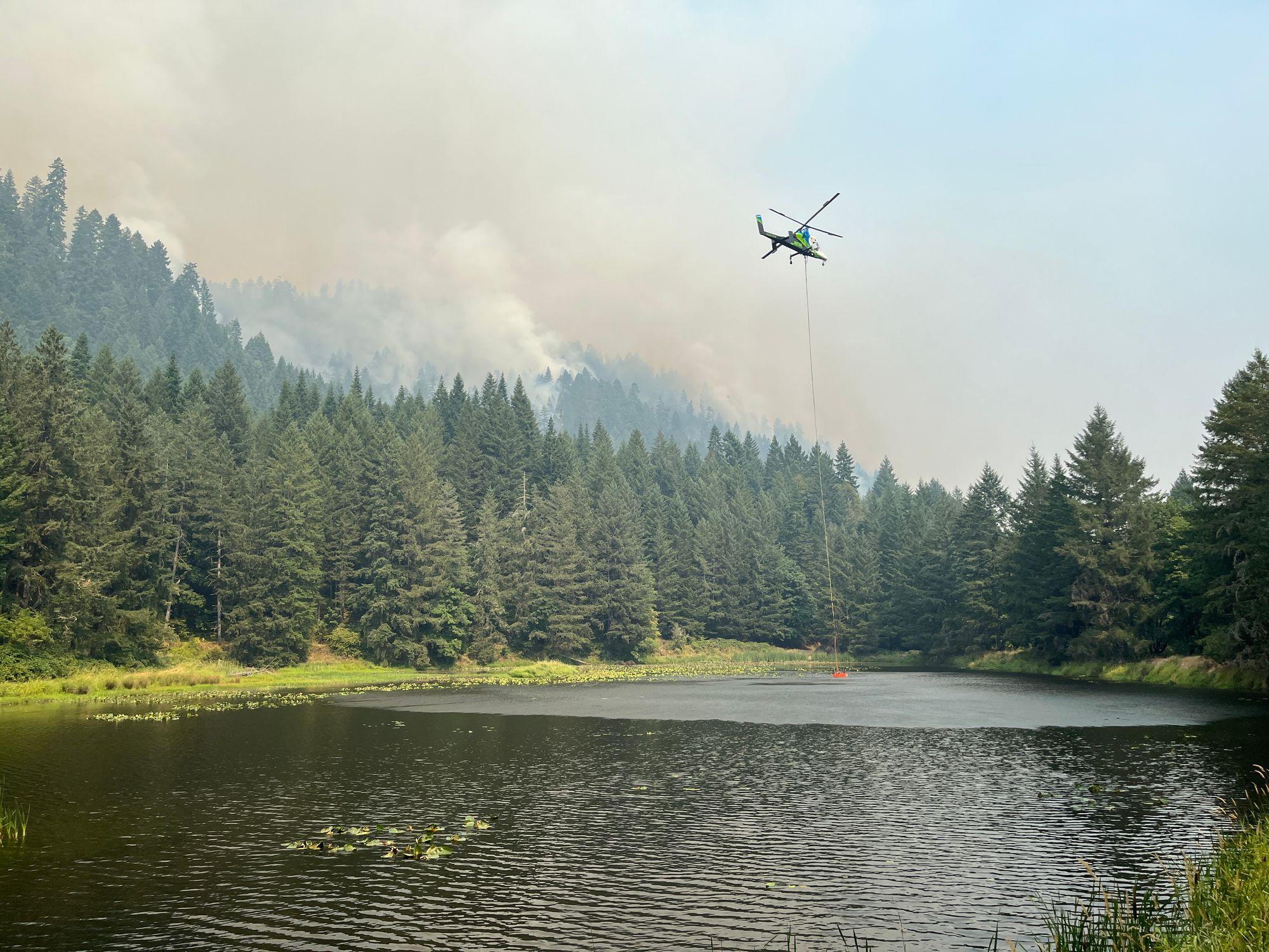The Tyee Ridge Complex fires had minimal growth in the last two operational periods. While firefighters continue to be engaged with active fire, the weather conditions enabled them to make direct attack, working safely on the fires edge. Overnight, crews faced new challenges with lack of visibility and wet road conditions. Oregon Department of Forestry crews to the north continued to secure lines and mop up. Crews on the Cougar Creek and Lighthouse Fires performed tactical firing operations of fuels within the fire line, identified contingency line options, and mitigated hazard trees. Crews on the NW portion of the Cougar Creek Fire were able to establish hand lines between previously constructed dozer lines. Dozers and excavators were actively reinforcing lines for future use and continue to aid in structure protection. Protection of structures remains a high priority in the Hubbard Creek and Briarwood areas. Oregon State Fire Marshal structural task forces and hand crews are reinforcing lines around homes and continuing to mop up. Today, the weather again offers favorable conditions allowing firefighters to go direct in some areas. Crews working the Lighthouse Fire will focus on preparing indirect lines for future burning on the difficult terrain to the west of the perimeter if needed. On the Cougar Creek Fire, firefighters to the SW are working along Bear Creek Road to keep a safe access point for personnel. On the SE portion crews will remain diligent in securing lines around homes and mopping up. Structure protection on Hubbard Creek Road will consist of hose lays on existing dozer lines and prepping structures to the south side. Air attack remains available to support control efforts and has set up of a mobile retardant base for future air operations. Via incident command