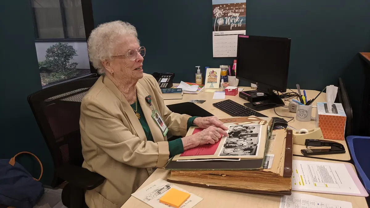 In the summer of 1962, Helen Hilgers was a teacher at Toketee School near Toketee Falls. She was a newly married woman in her twenties teaching first and second grade at the school Monday through Friday and playing the organ at her church on Sundays. When a friend suggested she volunteer at what was then Mercy Hospital on her day off, Hilgers agreed to try it out. Tomorrow, Helen Hilgers is retiring after volunteering over 43,400 hours at CHI Mercy Health over the past 60 years. Now 88 years old, Hilgers is a spry, witty woman wearing sharp suits and is still setting the example as a volunteer. Over her time at Mercy, she helped with patient service which included delivering the coffee cart and magazines and serving in Mercy’s very first gift shop. The gift shop supported visitors and staff and raised funds for hospital needs. She also volunteered at the surgery desk, wrote the gift shop column for the hospital bulletin, worked the information desk and so much more. When she started, the volunteers were called the auxiliary or the “pink ladies.” “It's an old term. They used to wear pink jackets and you could spot them in the hospital because they had on pink,” Director of Volunteer Services Teresa Scott said. “The volunteer department would not be what it is today without Helen Hilgers. She was a great model for the way things should be done and she had the vision to see what was needed and made it happen.” Eventually, Hilgers was elected president of the auxiliary, then the region of Oregon, then the region of the Pacific Northwest, and finally the whole west coast for hospital volunteers. Hilgers acknowledges that her desire to help others comes from her family's tradition of volunteering and the influence of her parents. “My mom and dad were both volunteers and in fact, they were still volunteering with meals on wheels until my dad quit driving,” Hilgers said. “They volunteered in church, my dad volunteered at his job and we just grew up doing things like that, we helped them deliver meals. My grandmother lived with us for probably 15 years after my grandfather died. We learned how to treat older people, and that's part of the volunteering.” Hilgers' husband Martin Hilgers is the one who reportedly asked her to retire so they could spend their golden years together. “But it's all been fun, it's all been great,” Hilgers said. “I wouldn't be happy just doing nothing. And I really don't want to quit but when you're 88 years old, you deserve to be able to sit down and do nothing and Marty wants me to. What I like about volunteering is that you meet wonderful people.” Volunteering is something that has impacted Hilgers’ life and she had some advice on how to get a new volunteer started. “Well, my first thing would be if you see someone you think would be a good volunteer, ask them,” Hilgers said. “Because many people don't have the push to do it themselves.” In addition to her fundraising efforts, Hilgers was able to save CHI Mercy Health an estimated $1.22 million in paid staff funds. This funding has allowed the hospital to pay for trained and certified staff to keep the rural hospital operational. In 2020, volunteers were restricted from helping in the hospital for their health. Scott said the absence of the volunteers was difficult on everyone. ”The staff was very upset that they weren't here,” Scott said. “It was not the same place without the volunteers. They, almost all of them, said that “can't we just come. We will sign anything, any waiver.’” “I'll miss it,” Hilgers said before laughing. “And I'll also miss the food in the cafeteria!” On average, the 61 volunteers at Mercy contribute 700 hours of time per month to serving staff and patients in a myriad of ways. If you or someone you know may be interested in serving at CHI Mercy Health, visit https://chimercyhealth.com/patients-visitors/volunteer/volunteer-application/