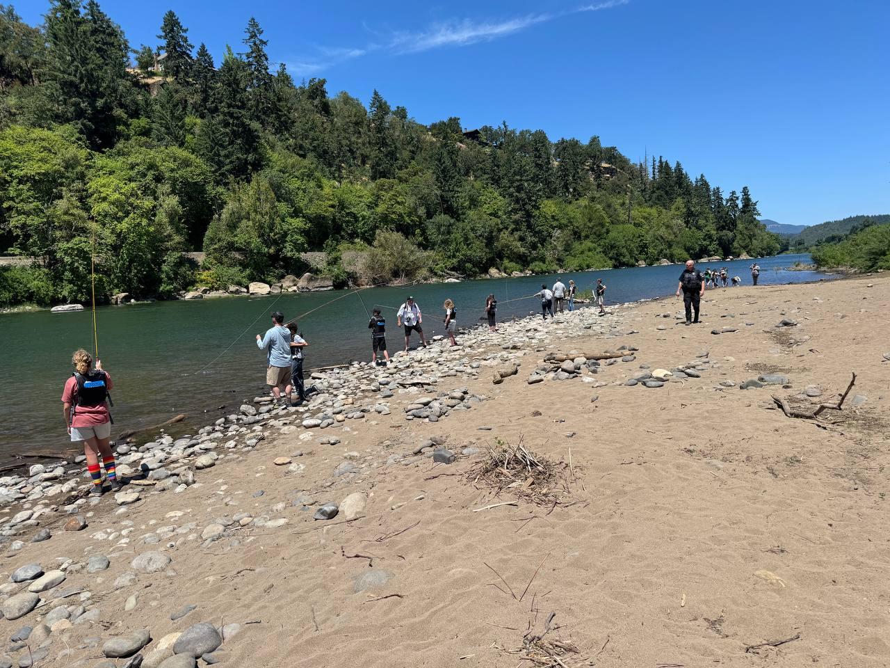 River Forks Park is buzzing with excitement today as students from Myrtle Creek take part in the Umpqua Fishery Enhancement Derby River Forks Kids Day, a hands-on fishing and river safety experience on the Umpqua River. The event runs June 3–5, 2025, bringing in different schools each day. Supported by $35,000 raised at the Umpqua Fishery Enhancement Derby, the program is a team effort by the UFED, Fly-Fishing Veterans, Oregon State Police, Umpqua Fishermen’s Association, ODFW, Douglas Timber Operators, and dedicated volunteers. Most of these kids have never fished or been on a boat. Today, they’re learning fly fishing, rod and reel casting, water safety, knot tying, and fish identification—rotating through stations led by pros and volunteers, including the DCSO Marine Patrol and ODFW. Every child goes home with their own life jacket, rod and reel, tackle box, and backpack, giving them the tools to keep enjoying the outdoors. It’s a day about more than catching fish—it’s about building confidence, connection, and a love for Oregon’s rivers. This opportunity wouldn’t be possible without the generosity of the local community, whose donations and support are helping create lifelong memories for these kids. Tomorrow, students from Oakland will join the fun, followed by Melrose Elementary on Thursday.