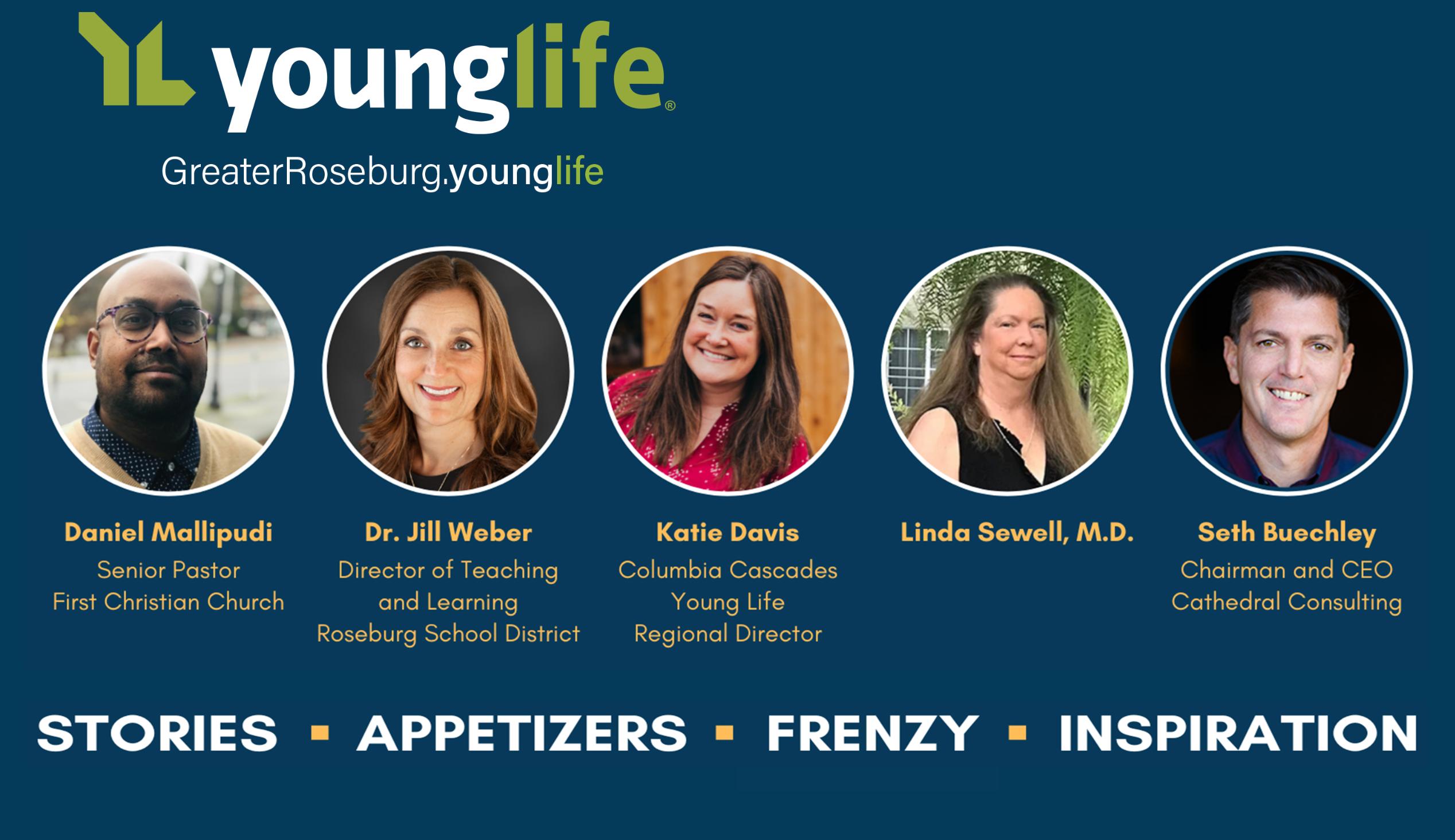 Roseburg, OR – Greater Roseburg Young Life is hosting "Mentors That Matter", a unique storytelling fundraising event on Friday, October 27 at UACT in Roseburg. "Mentors That Matter" features five speakers sharing personal stories about the impact mentors have had in their lives. The event will feature a presentation from Greater Roseburg Young Life Area Director Jon Nutter, and an opportunity for those in attendance to donate to the program. “Mentorship is at the heart of Young Life’s mission. We hope our event inspires people to invest their story into the story of young people in our area,” said Nutter. “Our volunteers are showing up for kids, going where they are, and sharing their lives so we can share our faith, which is the foundation for a flourishing life. We know kids hunger for that connection and foundation.” The speakers for "Mentors That Matter" are: Daniel Mallipudi, Senior Pastor at First Christian Church in Roseburg Dr. Jill Weber, Director of Teaching and Learning at the Roseburg School District Linda Sewell, M.D., Obstetrician/Gynecologist and owner of Excellence in Women’s Health Care in Roseburg Seth Buechley, Chairman and CEO of Cathedral Consulting Katie Davis, Columbia Cascades Young Life Regional Director Seating for "Mentors That Matter" is limited. Remaining tickets are available at $50 each and can be purchased online at https://or230.younglifetickets.com/mentors-who-mattered and at the door. UACT theater is located at: 1614 W Harvard Ave, Roseburg, OR 97471 Young Life (YL) is an international Christ-centered missions organization dedicated to middle school, high school, and college-aged students. Young Life volunteers serve on and around their school campuses and provide safe, high adventure, and fun environments including camp and club events for the exploration of the intersection of faith and life. For more information about Greater Roseburg Young Life, and our upcoming event, visit greaterroseburg.younglife.org/ Via younglife