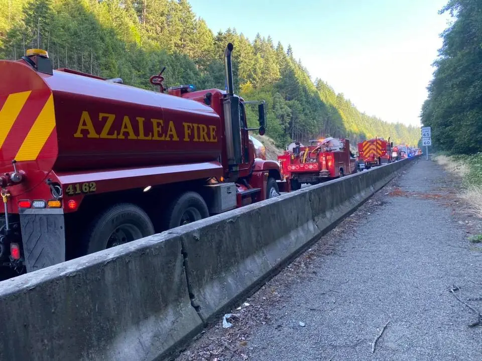 (DFPA) Milepost 92 SOUTHBOUND Fire: crews have the forward spread of the MP 92 southbound fire stopped and fully lined. Crews will remain on scene for several hours, mopping up hot spots. The final fire size was a quarter acre. In addition to our normal automatic dispatch of four engines, a bull dozer, a helicopter and a fixed wing observation aircraft, a 20 person hand crew and a tender were pulled off yesterdays MP 92 northbound fire where they were assigned to mop up operations, to assist with the new fire start. Additional resources responded from the Azalea Rural Fire Department, Canyonville - South Umpqua Fire Department, and the Oregon Department of Transportation. The cause of the MP 92 southbound fire is under investigation.