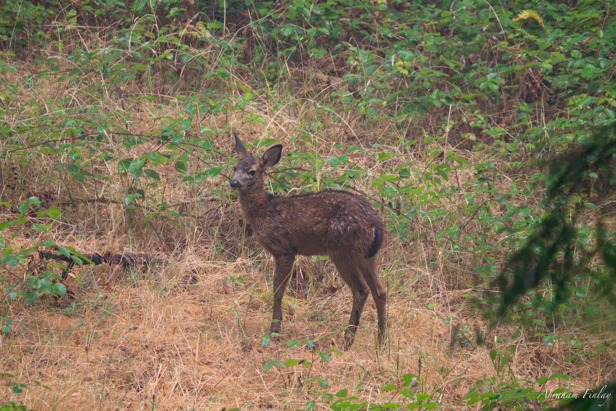 Here is the Saturday morning update from incident command: "Firefighting and favorable weather resulted in evacuation levels being reduced across the complex of fires. Fire perimeters on all fires have shown no growth in the last 24 hours. Roads remain closed in the Hubbard Creek area, but residents can now return to their homes with proof of residency. Night crews continued to prepare for future tactical firing operations and put in direct line where the fire can be accessed safely. Firefighters on the SE perimeter of the Cougar Creek fire established fire line from Bear Creek Road to Bear Creek and opened roads to safely reach the fire. On the north end of the Cougar Creek Fire, crews continue to establish containment lines towards Cougar Creek. All crews continue to mop up, address smoldering areas and larger fuel flare ups. The Oregon State Fire Marshal and Oregon Department of Forestry crews are using handheld Infrared cameras to locate hotspots around structures and on the fire line. These devices allow firefighters to quickly identify and address hotspots during mop up operations and structure protection. Today, the weather again offers favorable conditions, with potential for more rain, up to a quarter of an inch in localized areas. As fire behavior is now mostly creeping and smoldering, crews will take advantage during day operations by establishing direct line where possible and mop up in all areas. On the southern portion of the Cougar Creek Fire, crews are scouting locations for contingency lines. Structure protection on Hubbard Creek Road will consist of wrapping structures, installing hose lays, using handheld infrared units to identify hotspots, and mop up operations. Air attack remains available to support control efforts." Via Incident command Photo of a fawn on Hubbard Creek Road by Abraham Finlay