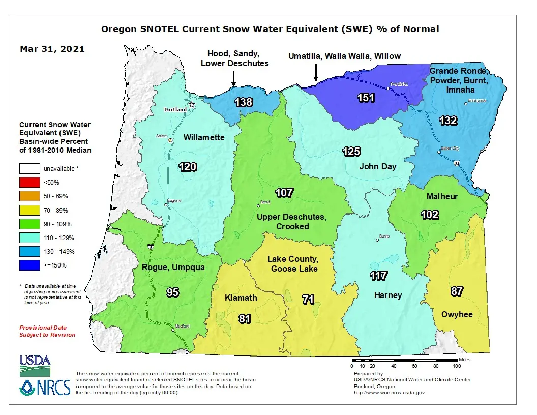 Our water outlook in Oregon looks drastically different today than it did at the end of March. April yielded almost no rain throughout the state of Oregon and the first half of May is continuing the dry pattern. It's setting Oregon up for a very serious drought heading into summer unless things change. Here is the full report from the National Weather Service: The water supply forecast for the spring and summer of 2021 is below average for almost all rivers in Oregon, except for a few watersheds in far-northeast Oregon, where forecasts are near to a little above average. Dry conditions in March and April have increased concerns about summer drought impacts across most of the state. Streamflow volume forecasts for April-September have dropped 15 to 30 percent compared to a month ago and 30 to 60 percent compared to 2 months ago. Note that water supply forecasts are particularly low for much of south-central Oregon, including Klamath and Lake counties. While not as extreme, forecasts for most western Oregon streams, particularly those draining the coastal mountains, have been reduced drastically compared to 2 months ago. Much of the state is already drought-stressed due to dry conditions for the past 18 months. Note that Governor-declared drought declarations are in effect for Jackson, Klamath, and Lake counties. Based on conditions and seasonal forecasts, there are likely to be significant and widespread drought impacts this summer, including stressed vegetation, increased fire danger, reduced availability of water for irrigation, low streamflow and warm water temperatures which negatively impact fish habitat, and poor rangeland conditions for livestock and wildlife grazing. Refer to the sections below and links provided for details regarding snowpack, precipitation, seasonal climate outlooks, reservoirs, streamflow, and water supply forecasts. The next update to this outlook will be issued by June 4, 2021. For the full Oregon Water Supply Outlook: https://www.weather.gov/media/pqr/WaterSupplyOutlook.pdf