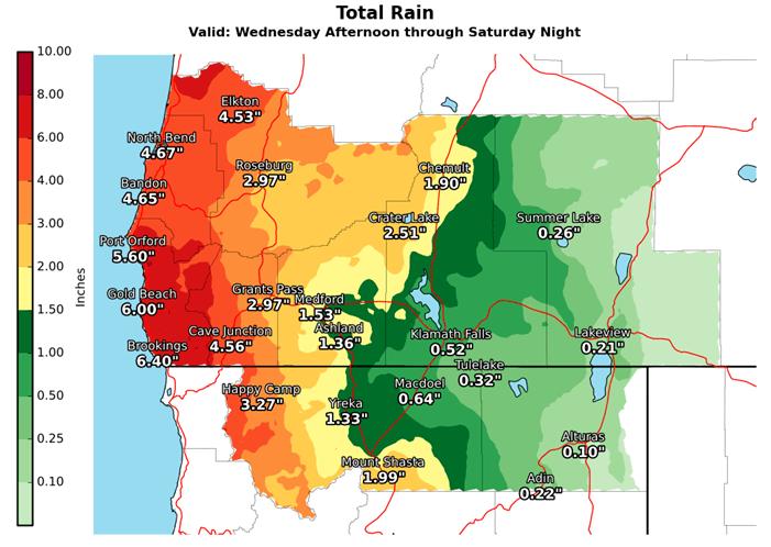 An atmospheric river is set to move through the area this week starting Wednesday night. Roseburg and the surrounding areas could see as much as 3 inches of rain between Wednesday night and Saturday. Temperatures will rise as this new system arrives and we shouldn't see temps in the 30's again until next week.