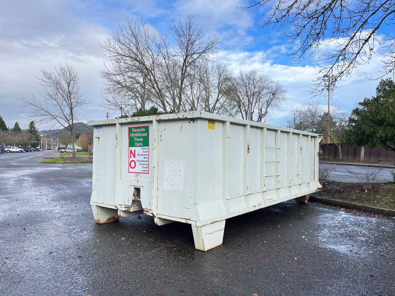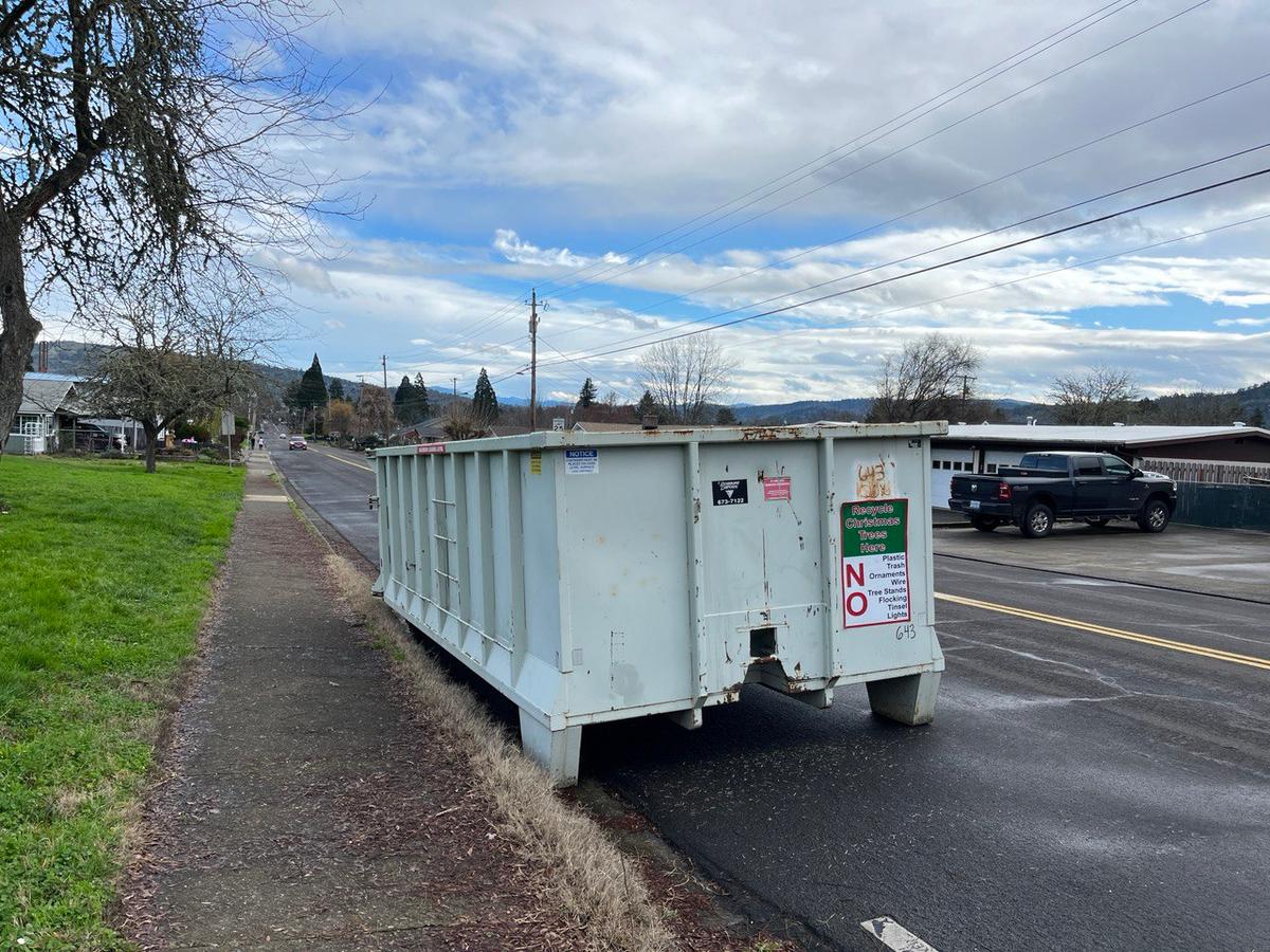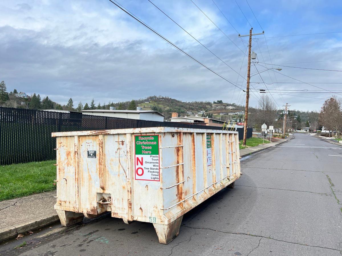Roseburg Disposal is offering free Christmas Tree drop-off boxes around Roseburg from December 26 through January 8th. Here are the details of the program from Roseburg Disposal: "We at Roseburg Disposal are thrilled to announce that we are continuing our Christmas tradition of collecting Christmas trees for free and are happy to offer this service as our gift to the community. Special thanks to the Douglas County Landfill offering free disposal of them. Roseburg Disposal Co. is providing free Christmas tree drop-off boxes in the following locations: Legion Field Kline St in front of Hucrest School Corner of Calkins Rd & Cherry St. Totem Market in Winchester Sherm’s Thunderbird Parking Lot Abby’s Pizza on Diamond Lake Blvd (SW corner of parking lot) Former Umpqua Auction (1028 NE Stephens) Rose Street by the old Safeway Redeemer’s Cinema Parking Lot (3041 W. Harvard) IMPORTANT: PLEASE HELP US CONTINUE OFFERING THIS FREE SERVICE BY NOT PUTTING GARBAGE IN THESE BOXES. THE TREES WILL BE RECYCLED INTO MULCH. NO: ornaments, flocking, lights, plastic bags, stands, doggy doo doo, or other refuse. There will be a $15.00 charge for trees that are picked up at your home or office. The trees must be cut into 4 foot or shorter lengths for pick-up." Via Roseburg Disposal Release Photos by Elijah Finlay