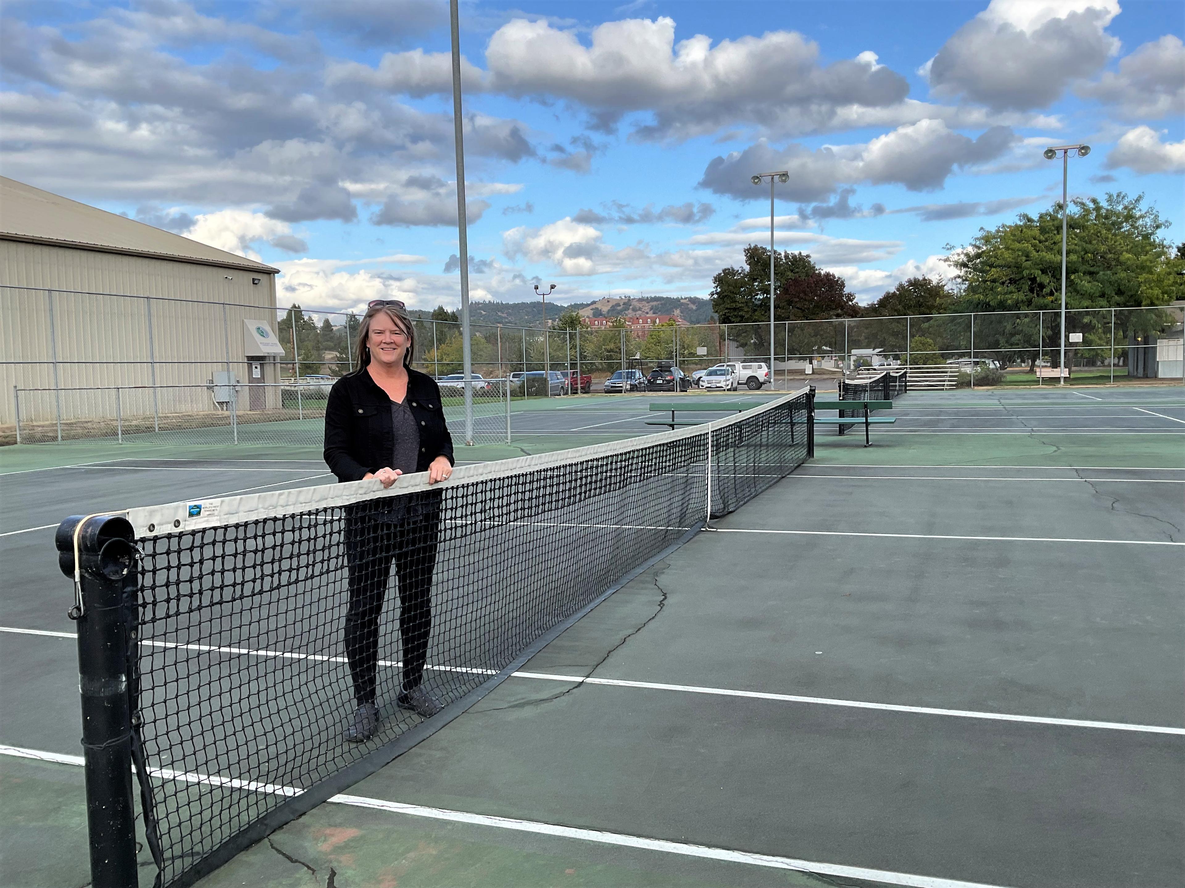 Roseburg will get a brand new outdoor tennis and pickleball facility thanks to a $750,000 state grant won by Roseburg Parks and Recreation and an effort to raise matching community funds. The sizeable grant, which was won by Roseburg Parks and Recreation Program Manager Velorie “Val” Ligon, will fund half of a complete overhaul of tennis courts more than half a century old. An expected $1.25 to $1.3 million renovation will include eight new tennis courts, 10 dedicated pickleball courts and new fencing, lighting, seating, entryway and security system. “Pickleball is the fastest-growing sport in the United States. Parks and Recreation is excited to give residents an opportunity to play this sport outdoors in Roseburg,” said Roseburg Public Works Director Dawn Easley. Money from the Oregon Parks and Recreation Department’s Local Government Grant Program, funded by the Oregon State Lottery, will be used to replace the Stewart Park courts that are owned by the City but operated and maintained by the nonprofit Umpqua Valley Tennis Center, which has already begun a campaign to raise matching funds from the community. “I would like to thank and recognize the Umpqua Valley Tennis Center for their partnership and stewardship of these popular facilities. We look forward to the renovations and serving people of all ages with the improved courts,” said Roseburg City Manager Nikki Messenger. The grant is one of the biggest ever won by Roseburg Parks and Recreation. Roseburg Parks were notified in an email Thursday, Sept. 21, the grant had been awarded to revamp low-cost courts where adults pay just $2 a day for unlimited play and anyone under 18 always plays for free. The outdoor facility currently contains 11 tennis courts and a space at one end that’s striped for four pickleball courts, but players must bring their own pickleball nets. The facility has always enjoyed strong community support. The facility first opened in 1959 with six outdoor tennis courts in City-owned Stewart Park. Two projects to grade that area in the late 1960s and add storm drains and underground electrical wiring were funded with $70,000 – half from federal Land and Water Conservation Fund money that was matched by City funding, said Ligon. In 1970 during a U.S. tennis boom, six more outdoor tennis courts were added, along with lighting, fencing and drinking fountains, at a cost of $30,000 split between Land and Water Conservation Fund money and City funding. Interest in year-round play was strong enough by 1989 that the tennis community began to raise funds to build three indoor tennis courts. The community donated $1.6 million to add the indoor courts plus court viewing area, locker rooms, a pro shop and offices. UVTC now promotes tennis in the area through low-cost junior tennis programs in partnership with local schools and nonprofits, as well as offering instruction, league play and social activities for players of all levels. The courts sometimes hold puddles of standing water after rainfall due to uneven surfaces. Over the years, the outdoor tennis courts have been resurfaced more than once and cracks up to three inches deep have been sealed repeatedly. “They’ve been really well-taken care of – that’s why they’ve lasted as long as they have,” Ligon said. “The outdoor courts have way outlived their useful life.” The refurbished facility will include all-weather courts covered with a more permeable, premium Plexipave surface; energy-efficient LED lights for night games and tournaments; new nets and posts; a hitting wall; black vinyl perimeter fencing; and improved seating. “Everything within the current footprint will be new,” Ligon said Friday, Sept. 22, during a visit to the old tennis courts. Conceptual drawings have been created. Work on Phase 1 design plans can now begin. Construction is hoped to begin as early as spring 2024 and be completed by fall, she added. Ligon began working on the grant with UVTC last fall and submitted the application before April 1. Ligon, who grew up in Roseburg, remembers when the existing tennis courts were brand new. Her parents still live near the facility. The tennis courts are popular with players of all ages and serve as the high school tennis team’s home courts, so their refurbishment means a lot to the community. “It’s very exciting to get to be a part of this,” Ligon said. To learn more about the project or fundraising campaign, visit the Umpqua Valley Tennis Center website. https://www.umpquavalleytennis.com/improvement Via City of Roseburg Release