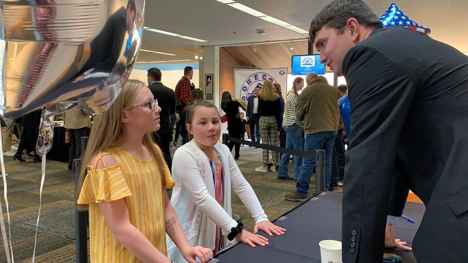 Former Roseburg resident Chris Thompson was inducted into the inaugural class of the Oregon Swimming Hall of Fame today at the LaSells Stewart Center in Corvallis. Thompson won the bronze medal at the 2000 Summer Olympics in the men's 1,500-meter freestyle. He was the second American swimmer to break the 15-minute mark in the 1,500-meter freestyle, and held the American record for four years. Thompson grew up in Roseburg and swam for the Roseburg High School swim team before swimming for the University of Michigan swimming a diving team from 1997 to 2001. He now resides in Michigan. Another Roseburg resident received a swimming award at the ceremony today. Irelyn Weaver received a Top 5 Oregon Swimming Award for the 10 and under division. Weaver is a 6th grader at JoLane this year. Congratulations Chris and Irelyn! It's a great day for Roseburg Swimming! Photos courtesy of Kaitlin Weaver