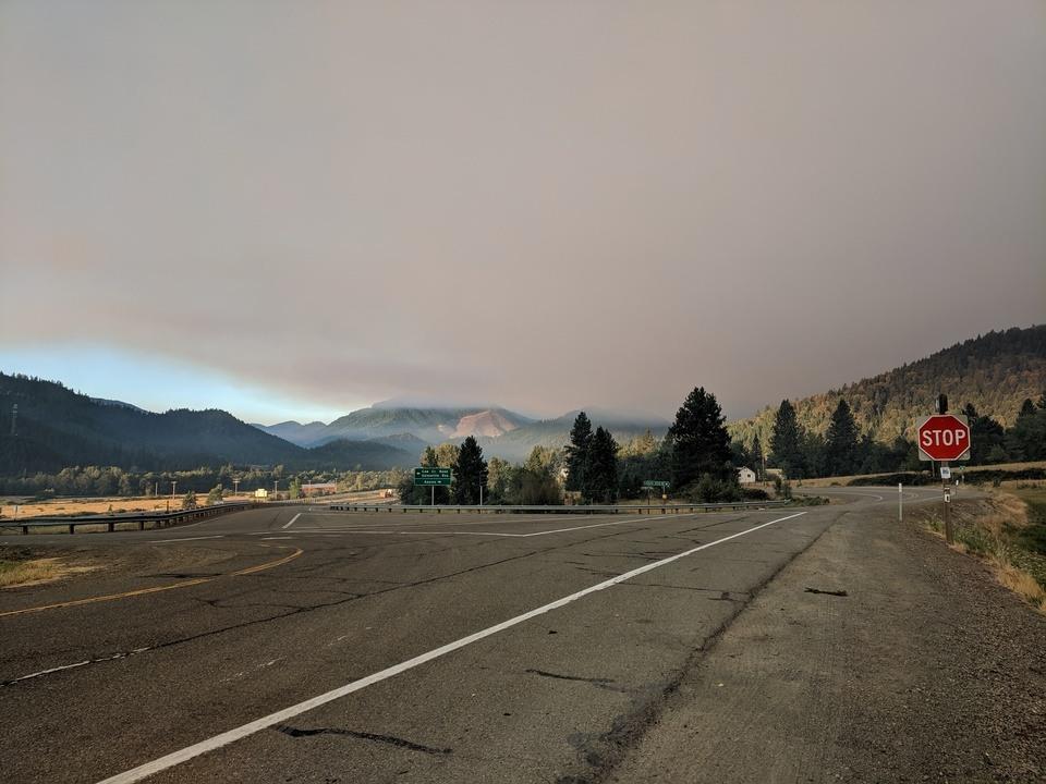 The fire is estimated at just under 9,000 acres in size. A level 1 evacuation remains in place for all residences on the west side of the freeway between Interstate mileposts 88-83. This includes: Barton Road, Azalea-Glen Road, Old Booth Lane, Harrel Lane, Hobbs Lane, Fortune Branch Road on the Azalea-Glen side Forrest Road Realty Road, Quines Creek Road, and Mobley Drive. Additionally, a Level 1 "Ready" notice is also being issued for all residences off of Upper Cow Creek Road starting at Interstate 5 milepost 88, east to the base of Galesville Dam. 15 helicopters are currently assigned to the fire along with a host of large air tankers and smaller single engine air tankers. Close to 900 firefighters are currently assigned to the fire that are split into day and night shift operations. I-5 southbound around the fire area has been reduced to one lane for firefighter safety. The fire is roughly two miles from the Azalea Glen area and 4 miles from the Windy Creek/Fortune Branch area. Photo by Ryan Finlay of Azalea area early Saturday morning.