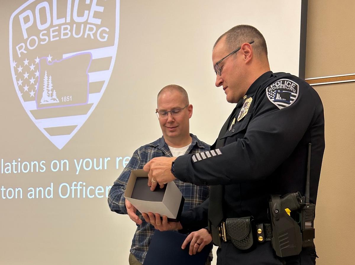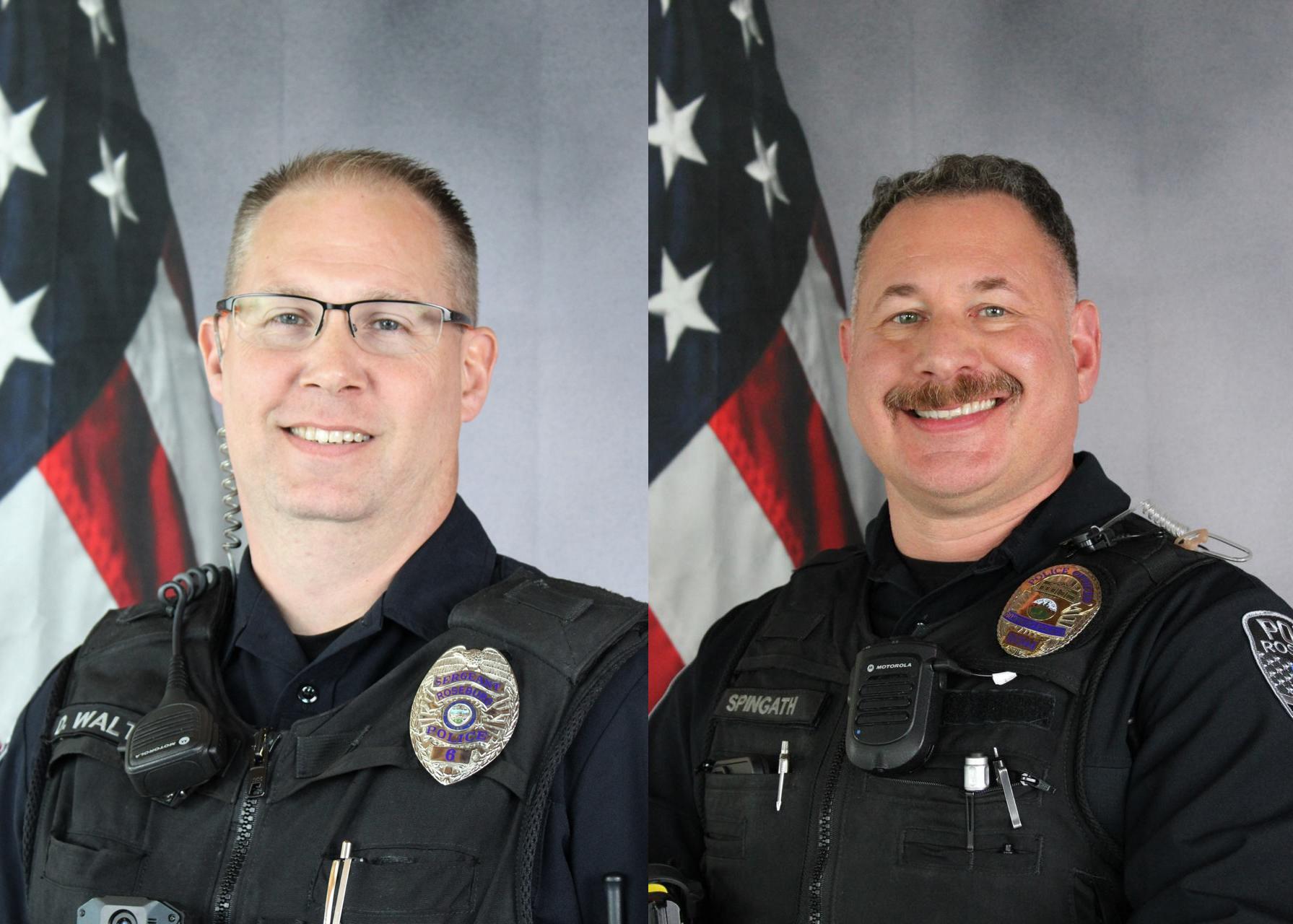 Yesterday, family and friends gathered to celebrate the retirement of Sgt. Walton and Officer Todd Spingath and their dedicated service to the Roseburg Police Department and our community for the past two and a half decades. Sgt. Walton began working for the Roseburg Police Department in October of 2000. During his career, he worked patrol for several years, served as a Detective, a Master Officer, Corporal and Patrol Sergeant. He was also awarded the Metal of Honor, served on the Hostage Negotiation Team, and was our regions Crisis Intervention Coordinator. Sgt. Walton is passionate about behavioral and mental health and will continue his career by working at Adapt as the Crisis Team Case Manager. Officer Todd Spingath began his career in December of 1999 as a Patrol Officer. During his career, he served as a Detective for over a decade where he worked multiple homicides, sexual assaults, violent crimes and officer involved shootings. He was awarded the Metal of Honor, served on the Interagency Honor Guard and was a sniper and team leader on the Emergency Response Ream. Officer Todd Spingath will continue his career by working as a Tribal Police Officer for the Cow Creek Tribal Police Department. Congratulations Sgt. Walton and Officer Todd Spingath on your well deserved retirement! Via Roseburg Police Department release