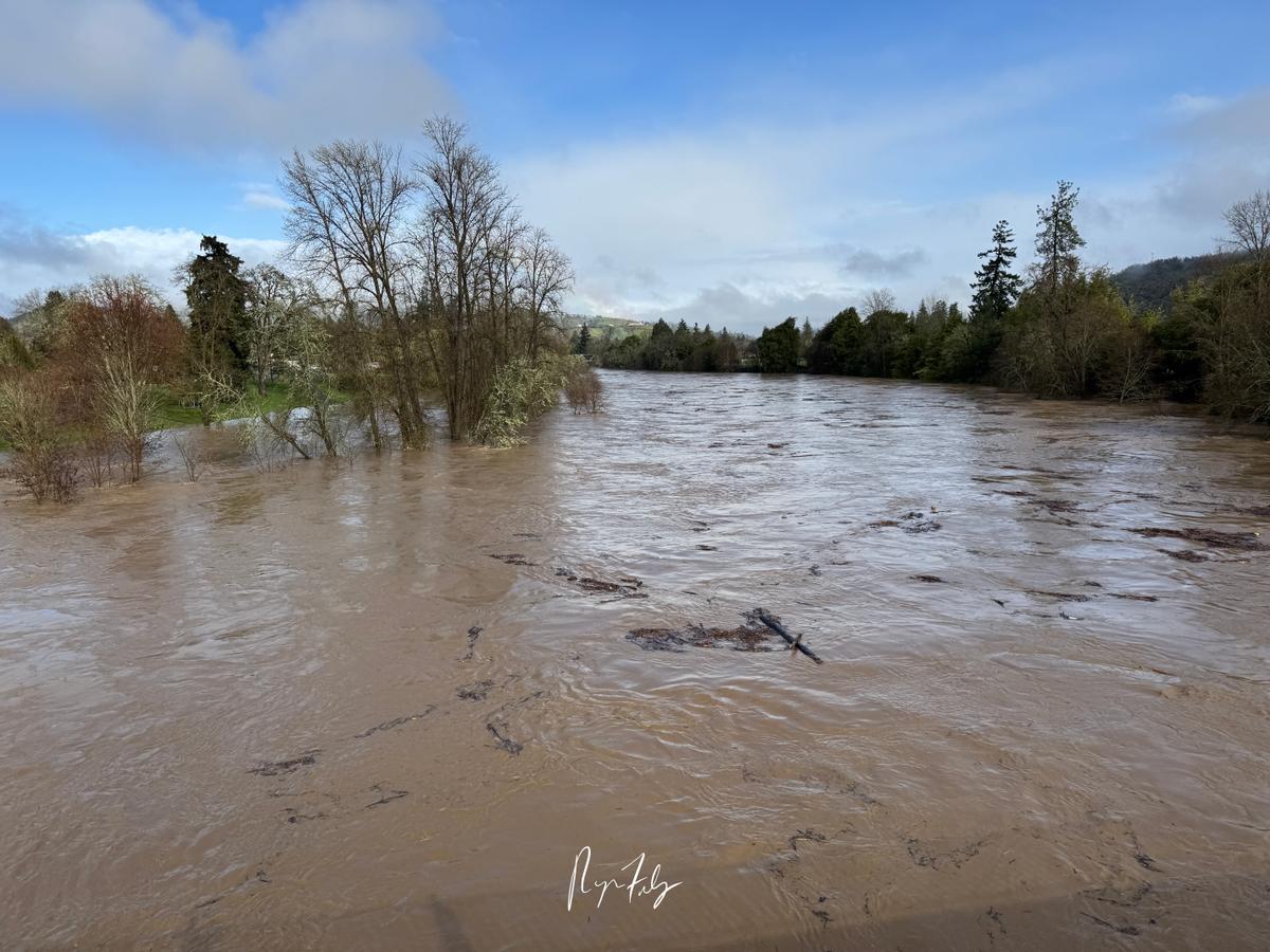 Today, the South Umpqua River reached a height of 29.04 feet, which is the highest the river has been since 1983, 42 years ago! Historically, this level ranks 10th among the highest recorded stages at this gauge, based on available data since 1927. Historic Crests for the South Umpqua River 1. 34.28 ft on 12-23-1964 2. 32.64 ft on 01-16-1974 3. 32.40 ft on 10-29-1950 4. 31.55 ft on 12-22-1955 5. 31.20 ft on 02-21-1927 6. 30.62 ft on 01-17-1971 7. 30.36 ft on 01-18-1953 8. 30.34 ft on 12-26-1955 9. 30.32 ft on 02-18-1983 10. 29.03 ft on 11-23-1953 11. 29.00 ft on 01-07-1948 12. 28.74 ft on 12-06-1981 13. 28.40 ft on 12-08-1996 14. 27.98 ft on 01-04-1966 15. 26.84 ft on 01-20-1964