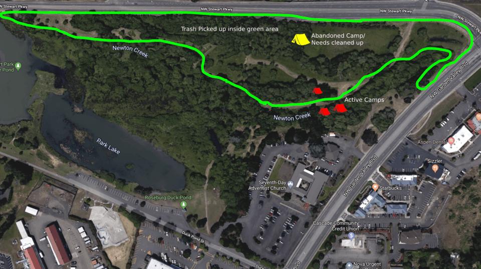 My youngest son and I just got back from picking litter and trash up in the Stewart Parkway Natural Area. We started at the corner of Garden Valley and Stewart Parkway and worked our way down past the Duck Pond, then back through the Natural area. Few observations: We need to do these cleanups monthly before the mower goes through and chews up the litter and garbage into little shreds. Makes it 5x harder to do the cleanup. There is a large abandoned camp in the trees close to Stewart Parkway. Whoever set it up must have cleaned out the donations from Goodwill one night because there are Christmas decorations and lights all over the place. Also the mattress has been there for about 2 months now. This abandoned camp still needs to be cleaned up. There are at least three active camp sites that we came across during the cleanup, and we didn't make it over to the Duck Pond side where there is likely more. I marked them on a map. I found a nice bike that had been abandoned by the creek. I will make a post to see if we can find the owner. There is a lot of landscaping and tree thinning that needs to be done in there. I'm going to meet with the Parks Department to do a walkthrough of the area and see what type of work the community could help out with. Ultimately we need to open things up via trimming to improve line of sight as much as possible to make it more difficult for people to illegally camp in there as well as make the area more safe for the community to walk through. It really is a beautiful area all through there, we just need to all work together to clean it up and make it more appealing for the community to use. Whoever stopped and thanked us while you were driving by, that was awesome, my son got a kick out of that :) 🤙