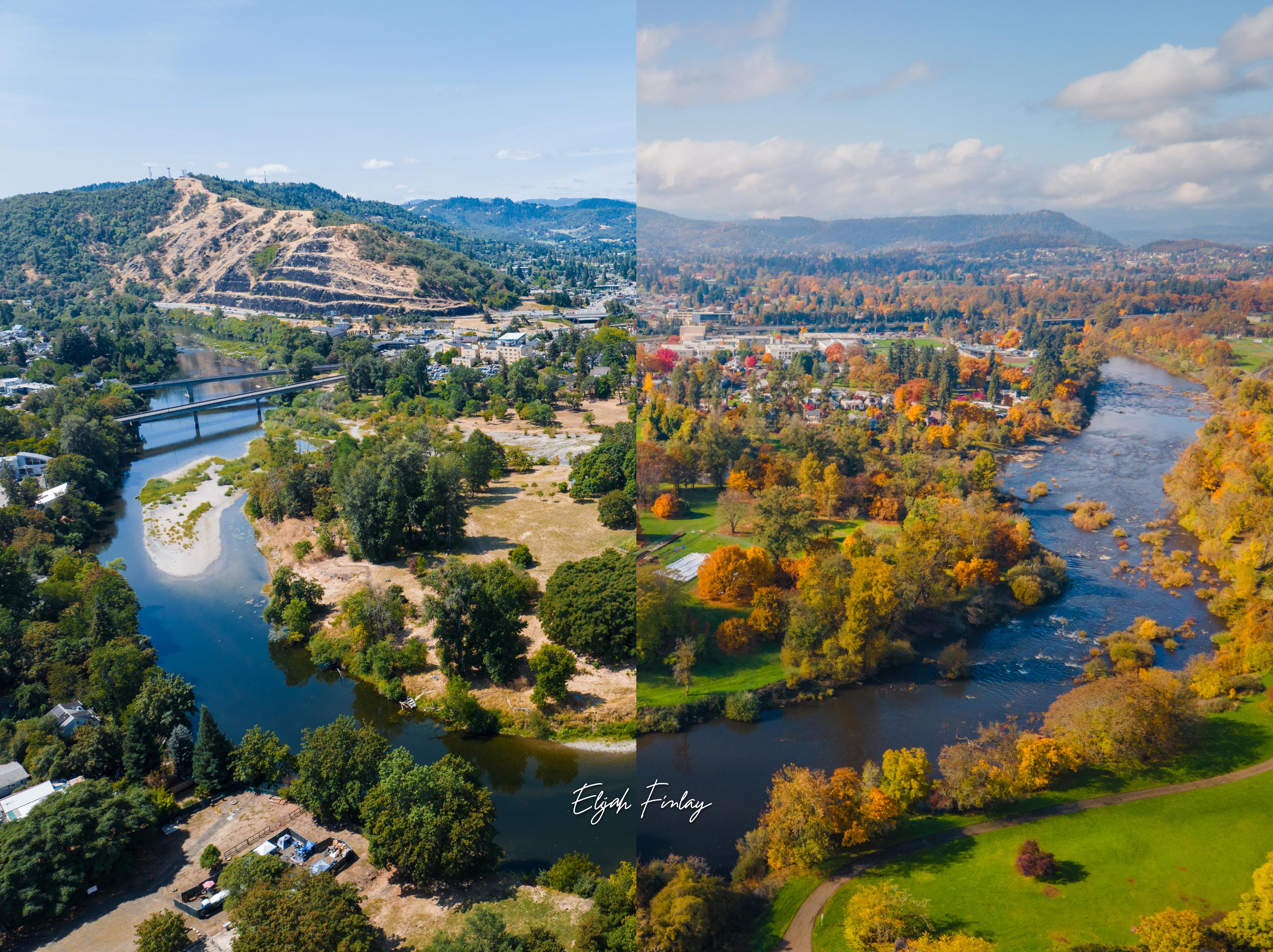 Here's a glimpse of the fall colors to come. ๐ ๐ธ overlooking Elk Island in Roseburg.