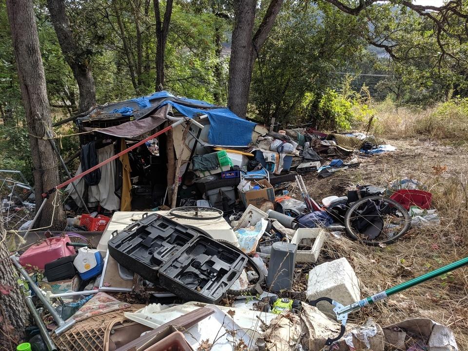 Sixteen people from all over Douglas County came together today and cleaned up an enormous amount of garbage in a camp located in Winchester off of NE Stephens. Approximately 50 yards of garbage was cleaned up and disposed of during the 4 hour cleanup. The biggest challenge was moving all the garbage over a hundred yards from where it sat to the dumpsters. Fortunately Randy Hougan showed up with his Bobcat tractor with a bucket on it and ran loads of garbage back and forth the entire time. We also uses Nate Frosland’s jeep and trailer to run loads back and forth continuously. John Steward also drove loads with his truck to the dumpster. I want to give an enormous shoutout to all the volunteers that came out and put an enormous amount of effort into cleaning this camp up. The staggering amount of garbage and filth that we moved today had been sitting there for five years. One of the most amazing things was how far people travelled to help. They came from east of Canyonville to our south and as far north as Oakland. It was very moving seeing their desire to help our community out. I want to thank Nate Frosland for all your help in organizing this event, as well as you and Memorie Froslands help documenting before, during and after the cleanup. Randy, thank you for bringing that tractor, you definitely helped save the day. John, thanks for being willing to take truckloads back and forth all day. City Councilor Ashley Hicks, thank you for all your help today, and for all the work you have put in cleaning up this community. Nicole, Curtis, Chelsy, Marilee, Chad, Valerie, Kevin, Megan Abraham and I’m forgetting a few, you all are awesome. Thank you for coming out and sticking with it until the end! Also want to thank the Douglas County Sheriff's Office for all your help as well as Umpqua Sheet Metal. Still lots more work to do, but we are making lots of progress. We will let you all know when we do our next cleanup. Appreciate you all!
