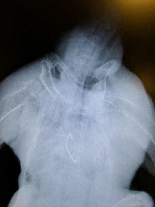 This is an X-ray from an Osprey in the area that swallowed a fish hook. Sadly it didn't end up surviving ๐
