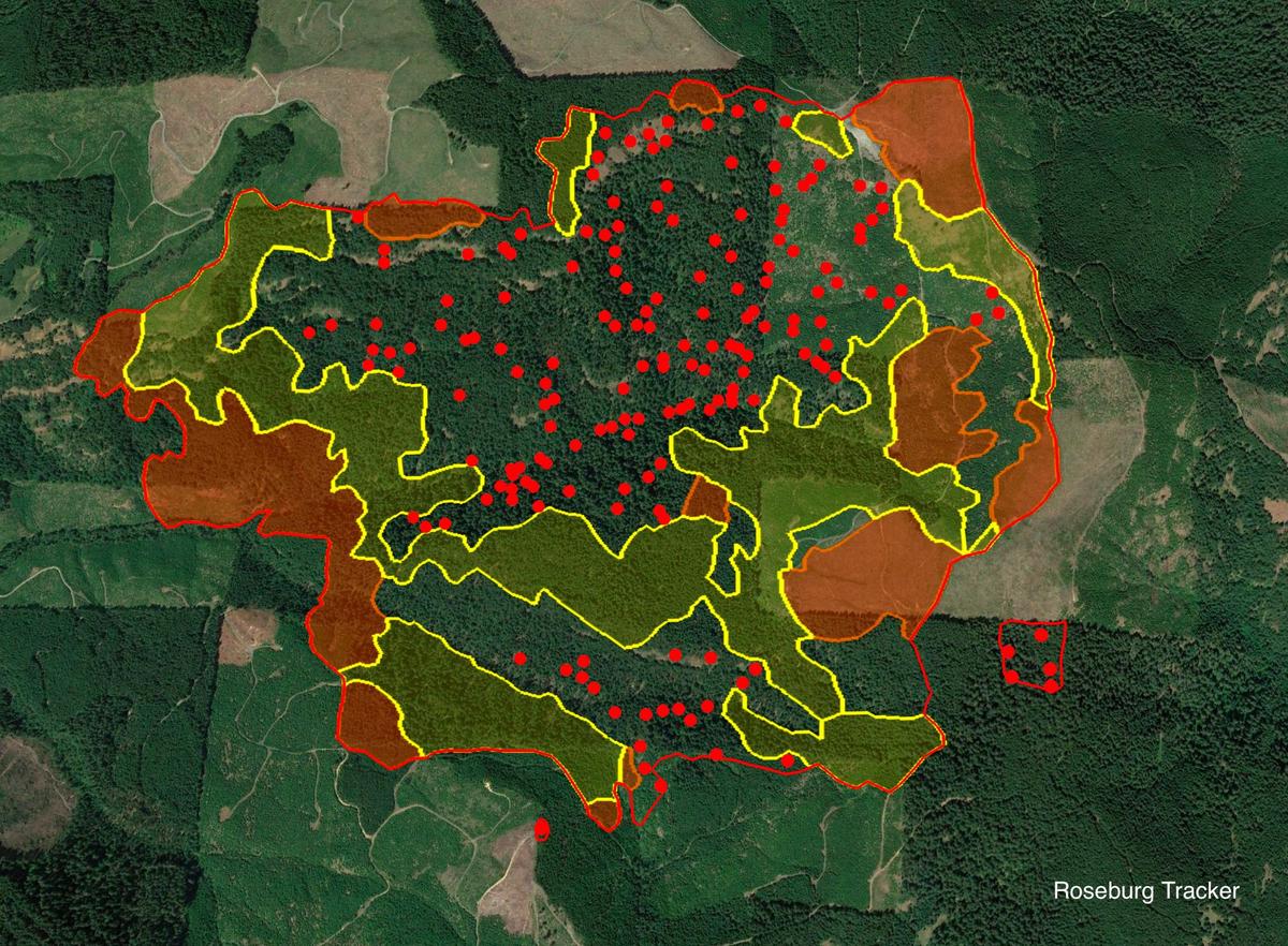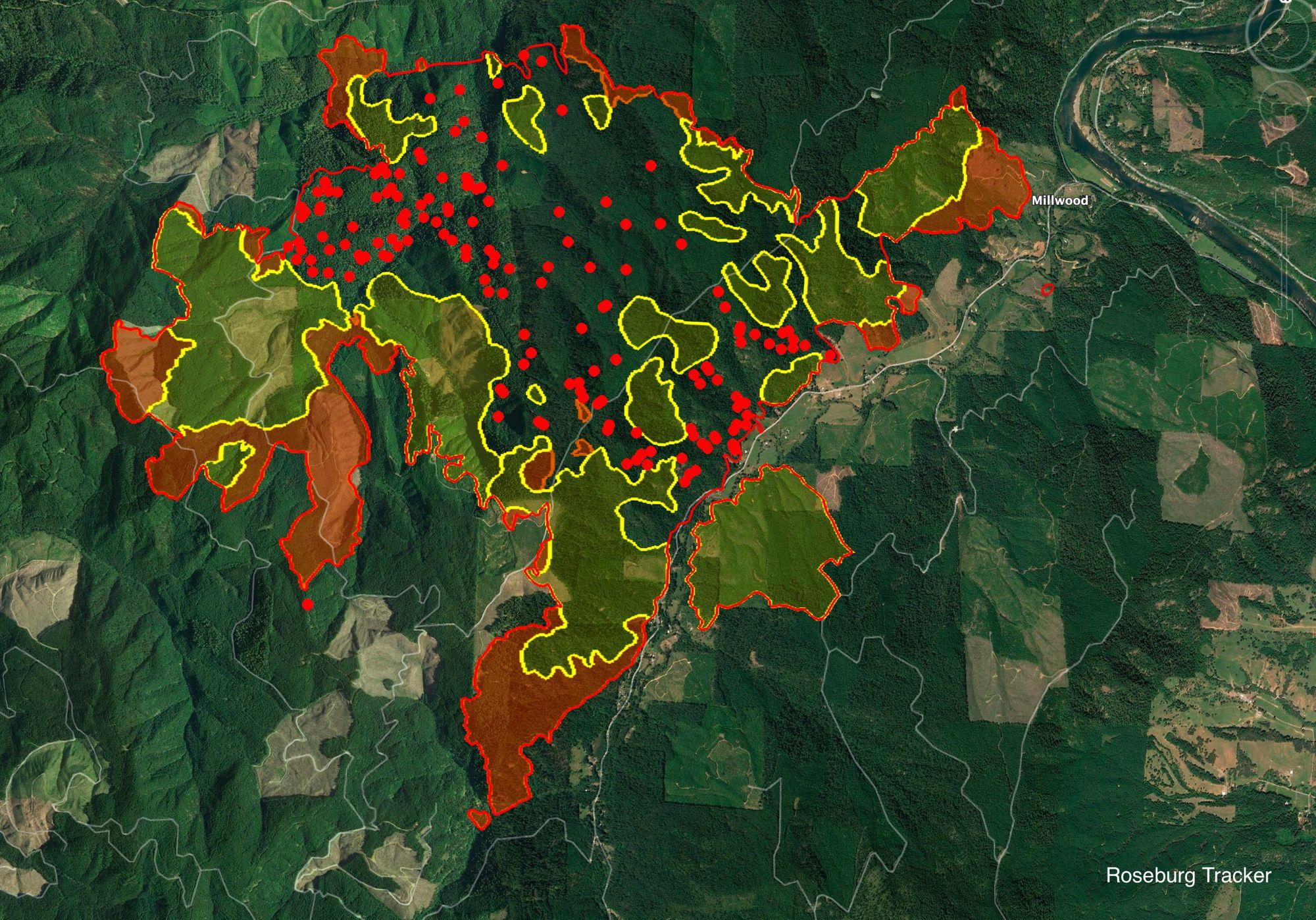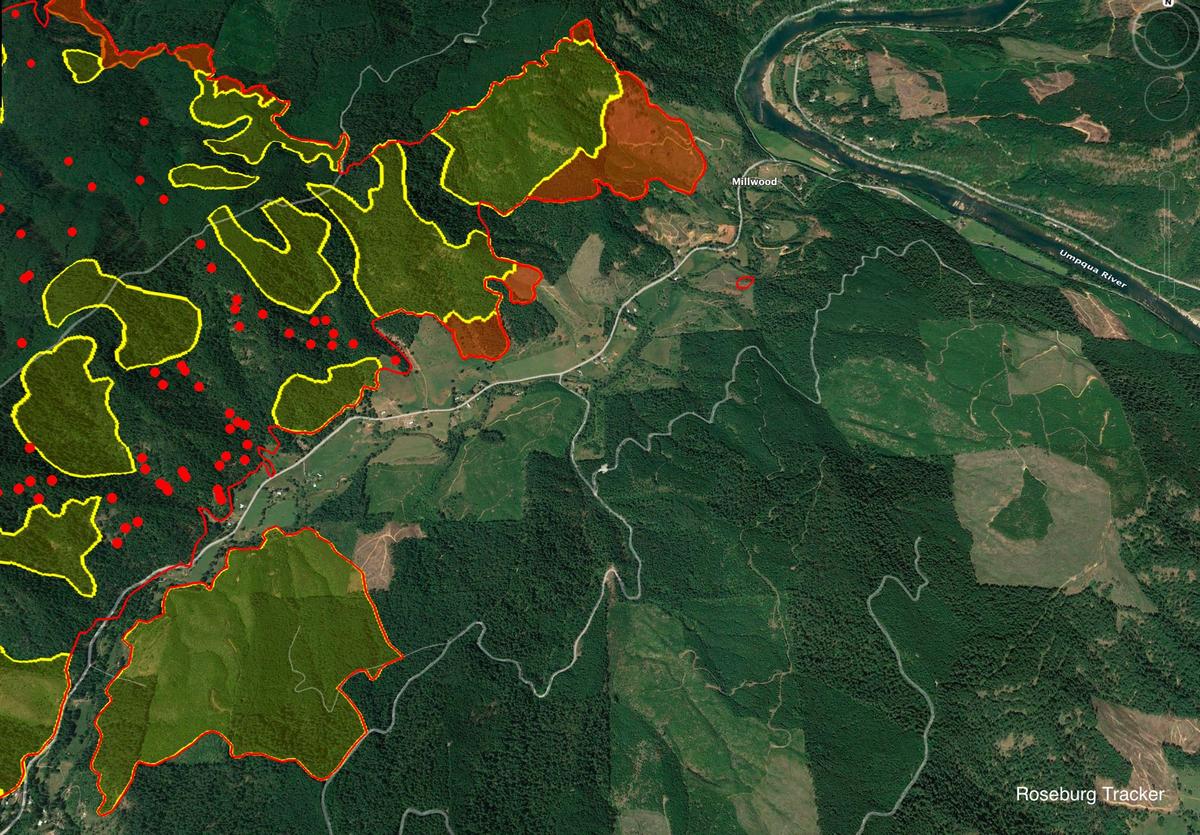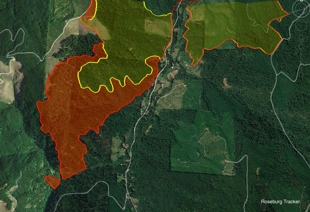 Thursday morning Tyee Ridge Complex Update - Fire boundary map is now updated. Cougar Creek Fire - 5,305 acres (+1337) Lighthouse #3 - 1,021 (+364) Lighthouse #1 - 7 acres "The Tyee Ridge Complex grew approximately 1,900 acres through the night. Over the last 24 hours, firefighters continued to be engaged with active fire behavior. Overnight, crews made progress with strengthening lines, responding to spot fires, and mitigating hazards. Personnel in the Hardscrabble, Blue Hole, Yellow Point, and Big Tom Fires continued to secure fire perimeters and perform mop up. As the Cougar Creek fire approached Cougar Creek, pushing to the south, crews worked to prevent the fire from reaching Cougar Creek Road. On the eastern perimeter of the Lighthouse Fire, firing operations occurred and line was established to the south. Coordination between Oregon Department of Forestry wildland resources and Oregon State Fire Marshal structural task forces continued to protect homes on Hubbard Creek Road and prepared structures, creating defensible space, in the Briarwood Road area. Today, cooler temperatures are expected and there is potential for rain during day operations. This change in weather will provide firefighters an opportunity to take a direct approach on spot fire, secure the fire perimeter to minimize the footprint, and establish new lines. Fuels remain dry under heavy tree canopy where some isolated torching may occur. Seventeen aircraft remain available to support ground resources including Single Engine Air Tankers (SEATs) and helicopters. Today’s crews will work aggressively to take advantage of the favorable conditions. Firefighters to the north of the complex will continue to mop up and hold the line, entering patrol status in certain locations. Structure protection continues to be a priority on Hubbard Creek Road and point protection operations are taking place in the Briarwood Road area." More updates to come later this morning.