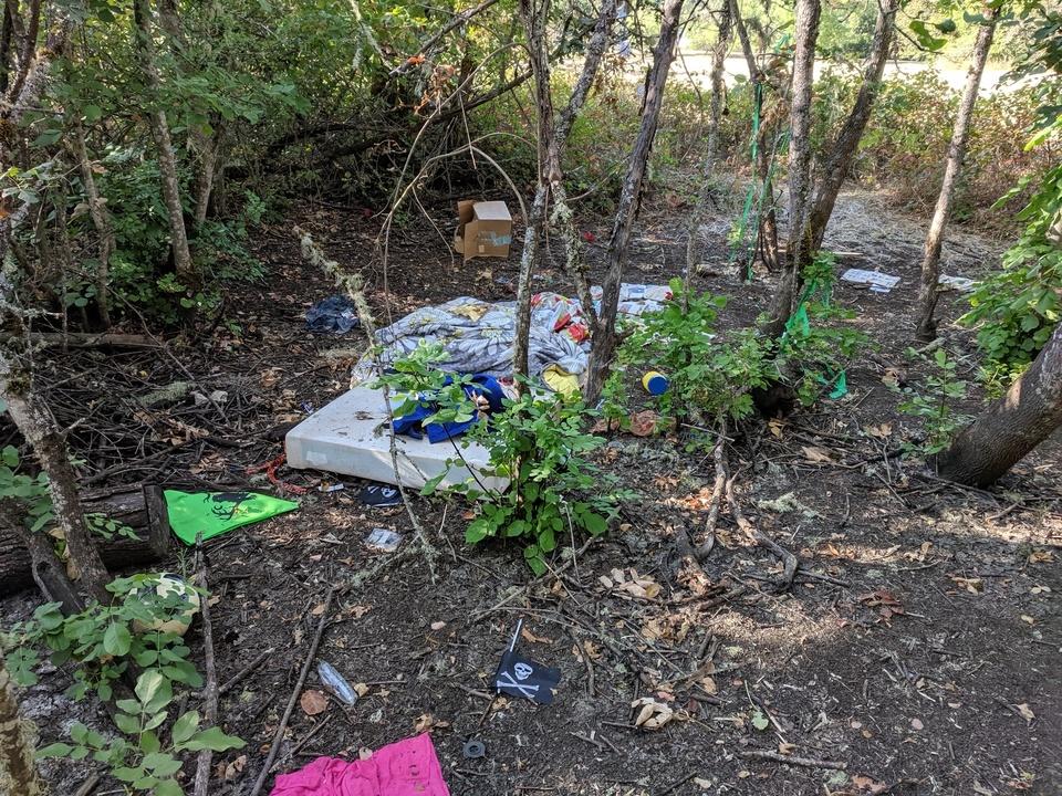 The Douglas County work crew today cleaned up piles of trash and litter that had been discarded in former camps in the Stewart Park Natural Area. Two more illegal camps in the parks natural area were also shut down. Thank you to all our local agencies involved in working together in these cleanups and for all you do to keep our parks and city clean. We appreciate all you do!